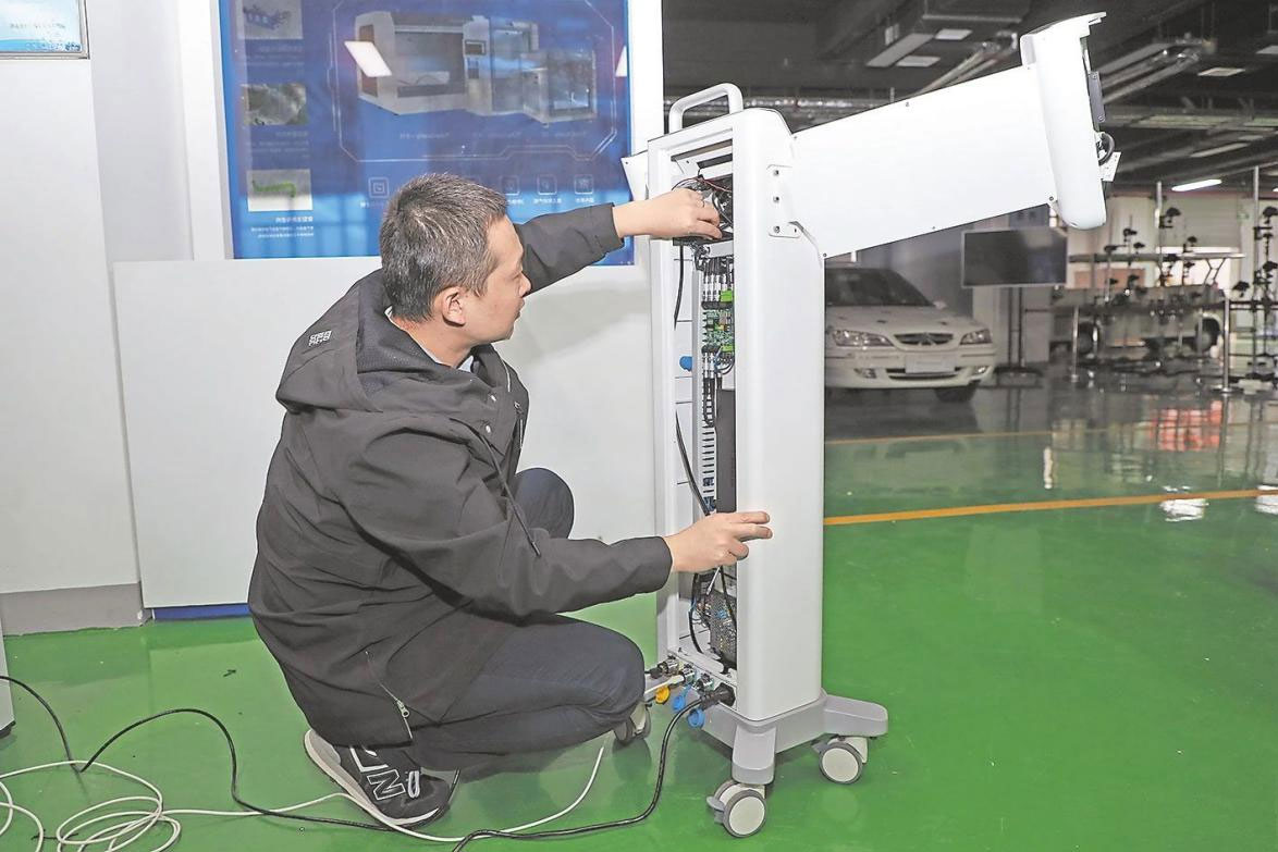 近日,渭南領(lǐng)智三維科技有限公司生產(chǎn)車間,技術(shù)人員正在安裝調(diào)試3D智能面部掃描儀。
