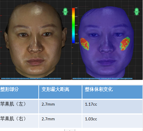 玻尿酸注射前,RDS-FC BodyScan 3D智能面部掃描儀采集的面部三維數(shù)模進(jìn)行變形分析。
