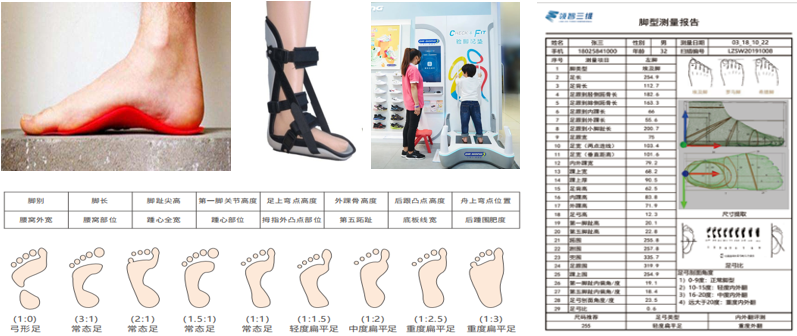 領智三維FT?BodyScan?3D智能腳型掃描系統(tǒng),系列產(chǎn)品包括3D足部掃描基礎款,足部、足底三維掃描六目款,增加足壓檢測功能的足壓款,可對人體腳型、鞋楦外型進行三維掃描,采集高精度3D數(shù)據(jù),并生成多項個性化3D腳型、足壓分布參數(shù),通過自動匹配鞋碼,實現(xiàn)終端選鞋;依據(jù)足部參數(shù)&個性化需求,實現(xiàn)個性化定制,同時基于足壓檢測功能,可直觀評估髖膝踝關節(jié)及足部疾病風險。