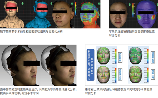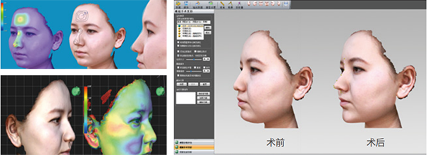 在微整形應用上,數(shù)字化3D模擬整形用于玻尿酸等注射微整,在設定注射部位的前提下,可估算出劑量及術后會呈現(xiàn)效果。通過自動將術前術后三維數(shù)據(jù)進行擬合對齊,找出差異的部分,用不同的顏色顯示其區(qū)別,并且可以計量出具體數(shù)據(jù)。