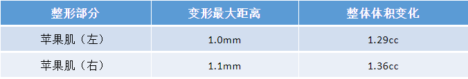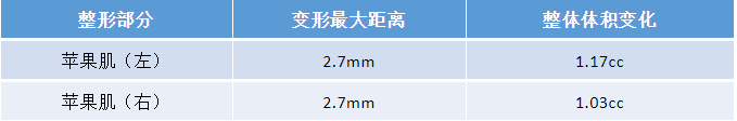 1個(gè)月后,與注射前RDS-FC BodyScan 3D智能面部掃描儀采集的面部三維數(shù)模進(jìn)行變形分析: