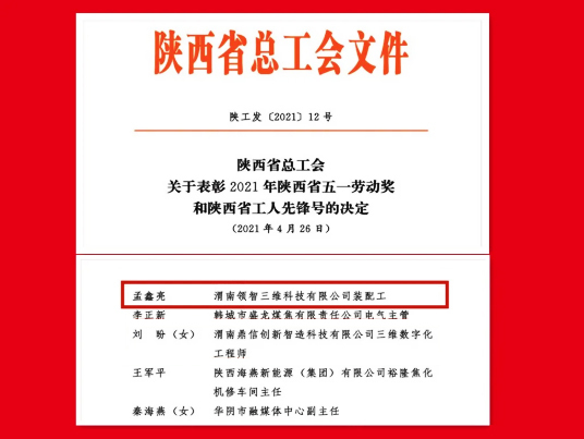 領(lǐng)智三維工程師孟鑫亮榮獲陜西省五一勞動獎?wù)?/h1>