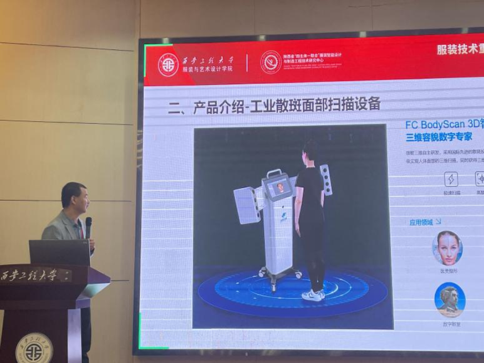 渭南領智三維科技有限公司副總經理丁軍濤在本次論壇的報告主題為“基于服裝相關的人體數(shù)字化和3D打印技術應用”,他介紹了領智三維依托自主知識產權算法,以及多年人體三維測量技術的應用積累優(yōu)勢,通過搭建產學研技術研發(fā)和創(chuàng)新平臺,充分整合上下游產業(yè)鏈,推出了一系列人體三維掃描,智能面部三維掃描,足部三維掃描產品方案,對產品在服裝個性定制與虛擬試衣、服裝設計與智能制造、服裝性能動力學仿真分析與試驗驗證等領域的應用進行了詳細的介紹,并針對三維人體掃描技術和3D打印技術在鞋服行業(yè)的應用做了詳細分享。