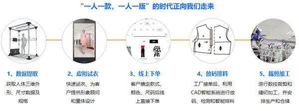 真正實(shí)現(xiàn)以銷定產(chǎn)的一件服裝制造,需獲取準(zhǔn)確的人體3D數(shù)據(jù),智能出版,一人一版。工廠才能真正可以快速出版(根據(jù)凈體數(shù)據(jù)),快速生產(chǎn)(快速出版),且不用先備貨生產(chǎn),不用測(cè)款,直接上架銷售。