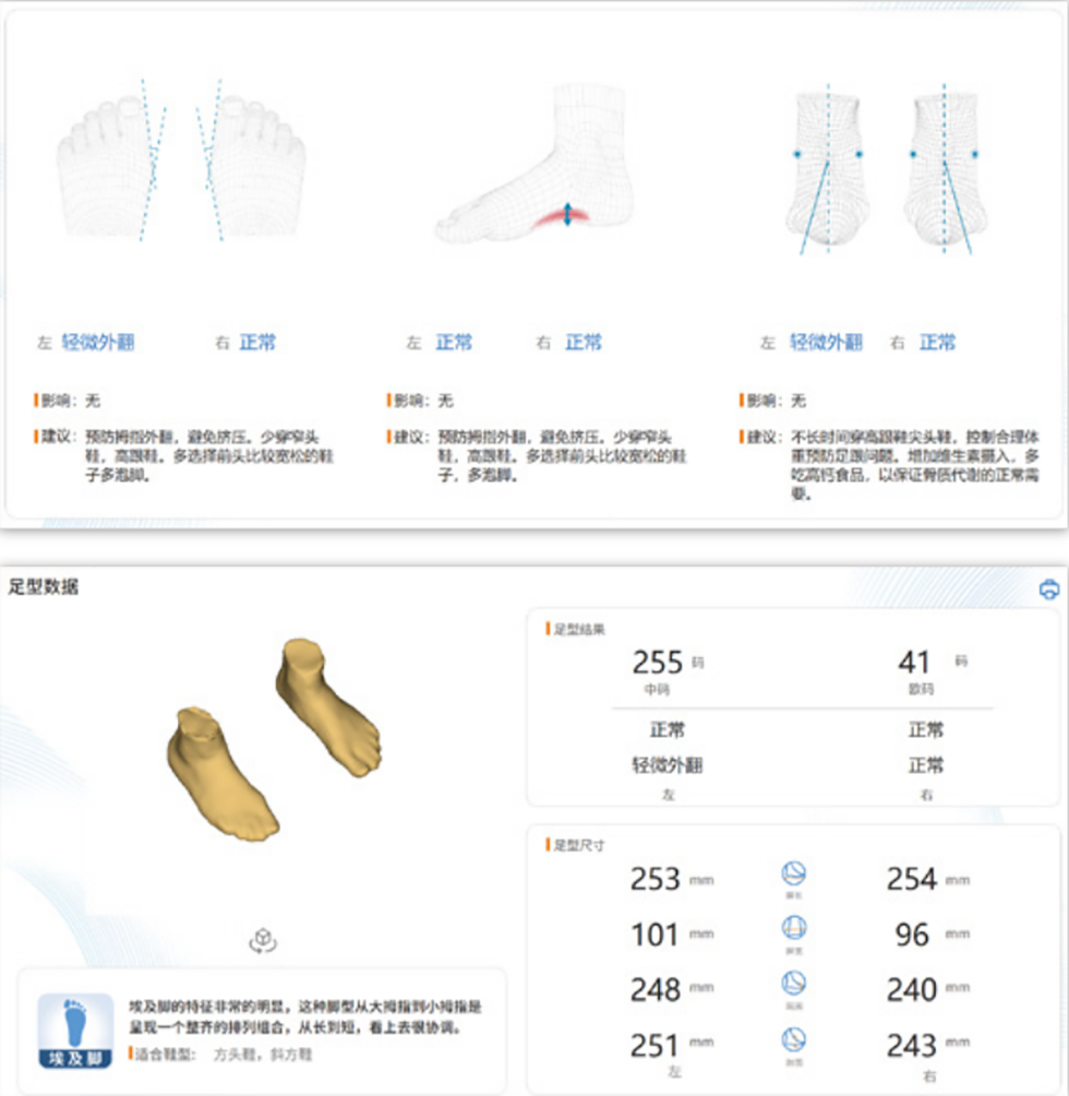 領(lǐng)智三維還展出了自主研發(fā)的3D智能腳型掃描設(shè)備,產(chǎn)品可用于人體足部、足底、足壓數(shù)據(jù)采集,快速識別和評估足部健康問題,可檢測、預(yù)防和矯正兒童不良足部病癥,適用于鞋履、鞋墊定制;同時結(jié)合足底受力區(qū)域的相關(guān)信息,可實(shí)現(xiàn)腳型3D數(shù)據(jù)建檔,矯治方案制定,足部矯形支具與假肢生產(chǎn),并進(jìn)行治療前后的數(shù)據(jù)對比。