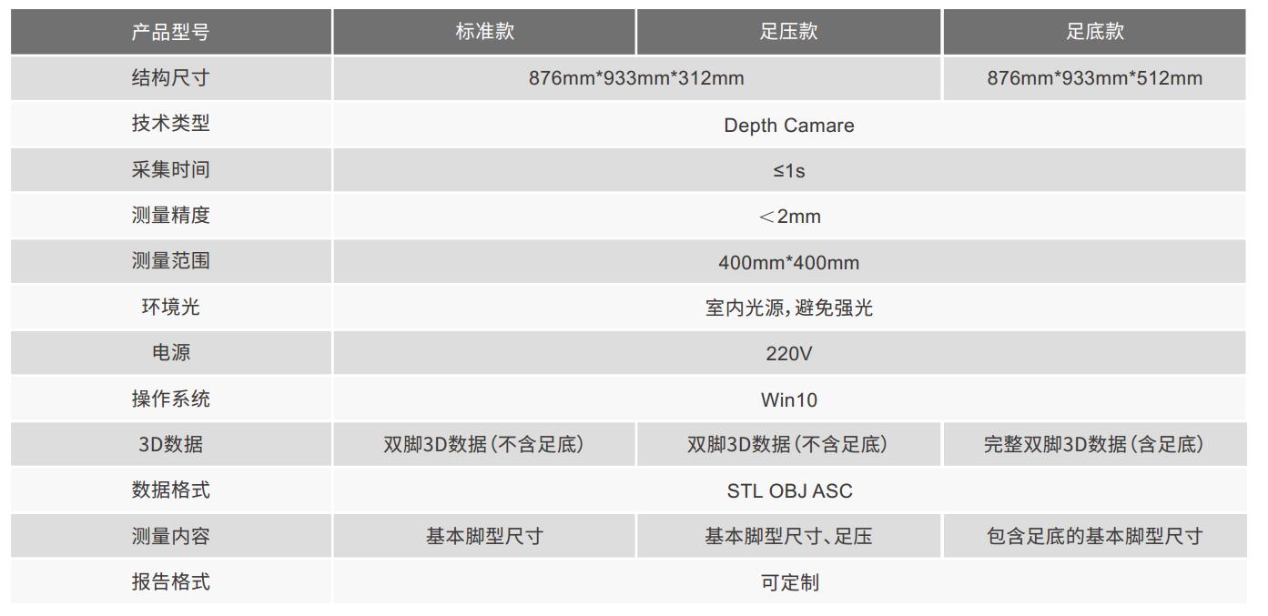 采用先進(jìn)的數(shù)字圖像相關(guān)匹配技術(shù),多測頭同步控制與采集,可在0.2s內(nèi)完成人體三維腳型重建,有效解決了由于足部晃動而引起的掃描誤差。